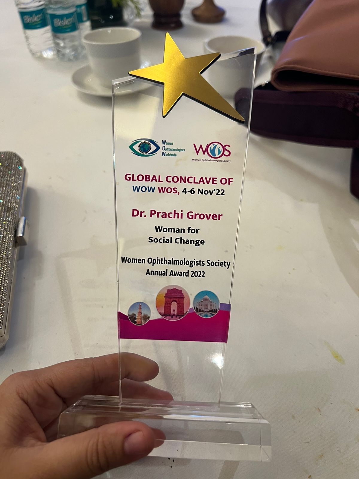 Dr. Prachi Grover was honored with the Woman for Social Change award at the prestigious Women Ophthalmologists Society Annual Award 2022. This recognition was bestowed upon her during the GLOBAL CONCLAVE OF WOW WOS, held from November 4-6, 2022. This award celebrates her significant contributions to social change through her dedicated work in ophthalmology, highlighting her commitment to improving eye care and her impact on the community.